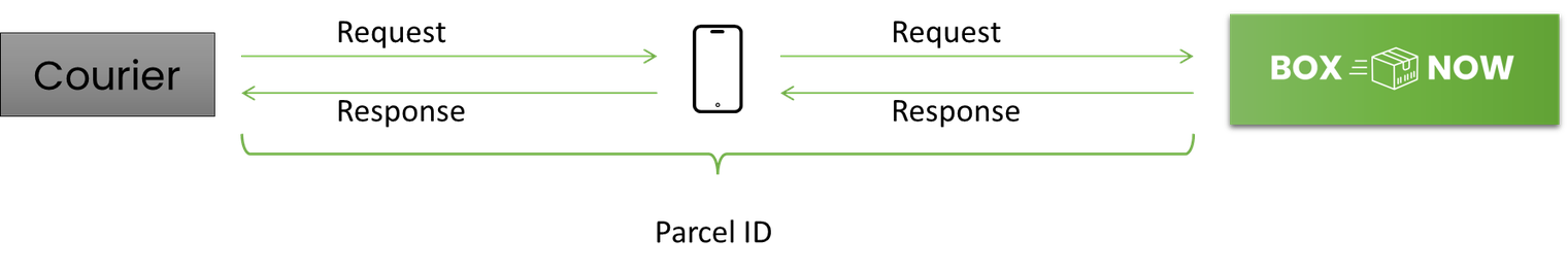 Όταν ολοκληρωθεί η διαδικασία ανίχνευσης και επιλογής locker, αυτόματα γίνεται η ανταλλαγή βασικών δεδομένων μεταξύ των συστημάτων του συνεργάτη-courier και Box Now (μέσω API) όπου θα δημιουργηθεί ένας αριθμός δέματος (parcel ID)