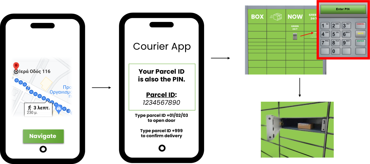 - Ολοκληρώνοντας, αφου βάλει το δέμα στην αντίστοιχη θυρίδα, θα χρειαστεί να ξαναπληκτρολογήσει τον αριθμό δέματος (parcel ID) +999 για να επιβεβαιώσει την παράδοση του δέματος.