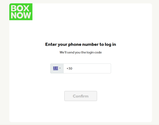Κάνετε είσοδο στο Portal πληκτρολογώντας το κινητό εγγραφής και πατώντας στο Box Now - Partner Portal στην συνέχεια confirm.