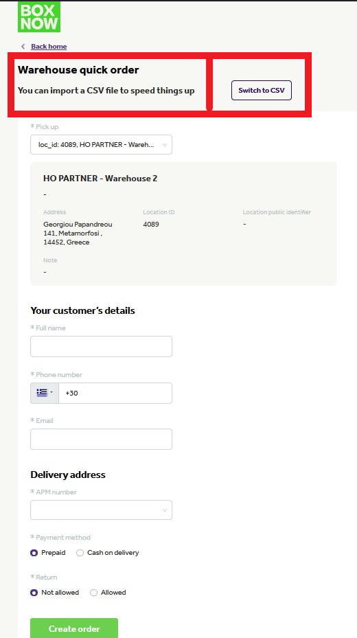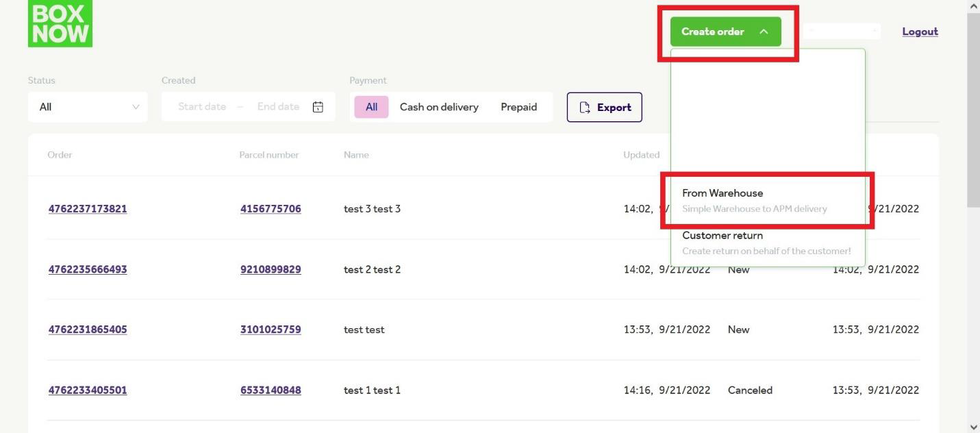 Για να δημιουργήσετε μία παραγγελία επιλέξτε το κουμπί Order from Warehouse.