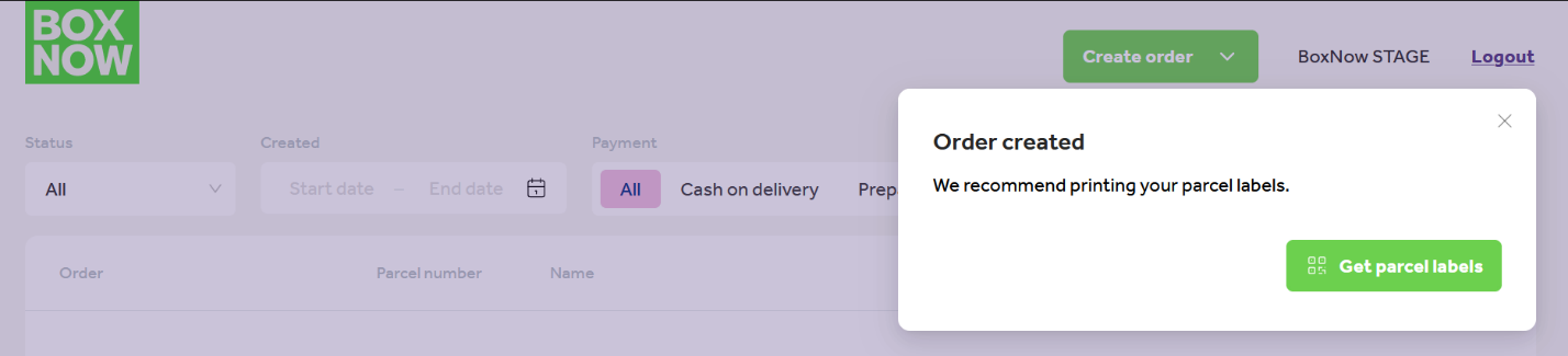 Επιλέγοντας Λάβε ετικέτα δέματος εμφανίζεται το voucher.