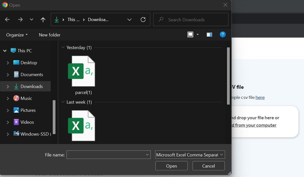 Εφόσον οι στήλες έχουν συμπληρωθεί, αποθηκεύουμε το αρχείο CSV και το ανεβάζουμε επιλέγοντας το ανέβασμα από τον υπολογιστή σας
