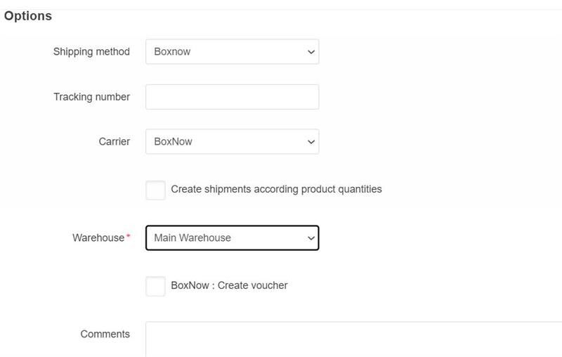 - Warehouse: το ανάλογο pickup point από το οποίο η BOX NOW θα παραλάβει το/δεματα.