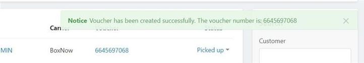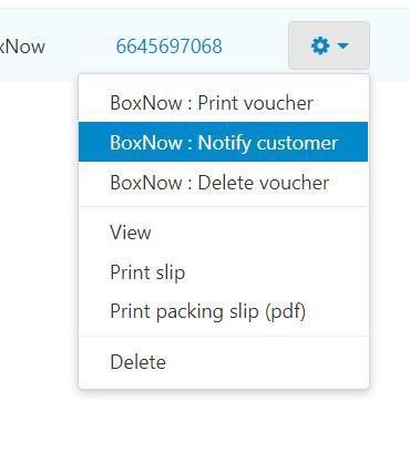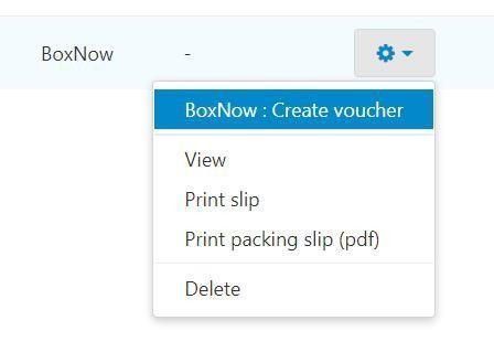 Επιλέγοντας από τις ρυθμίσεις στην αποστολή το BOX NOW: Create Voucher