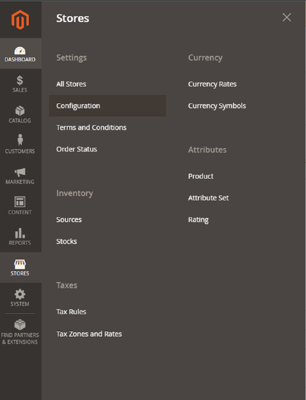 Αρχικά, πρέπει να ενεργοποιηθεί το BOX NOW σα μέθοδος αποστολής στο store configuration. Stores -> Settings -> Configuration
