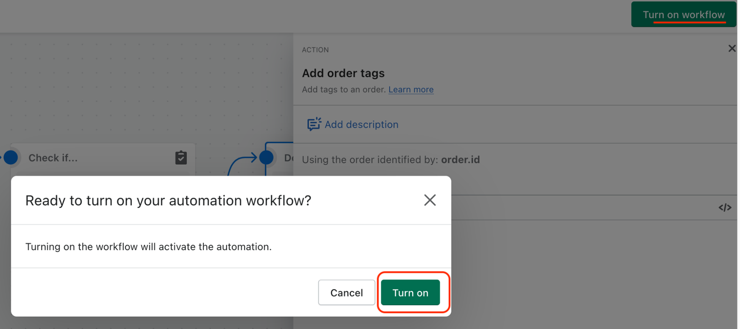 Μπορείτε πλέον να κάνετε μια δοκιμαστική παραγγελία για να δείτε ότι η συνθήκη έχει ρυθμιστεί σωστά, καθώς και η προσθήκη του order tag. Μπορείτε κάτω από το Workflows να δείτε και το Run history, που περιέχει το ιστορικό από workflows που έχουν τρέξει και έχουν ολοκληρωθεί (μέχρι και 7 ημέρες πίσω).