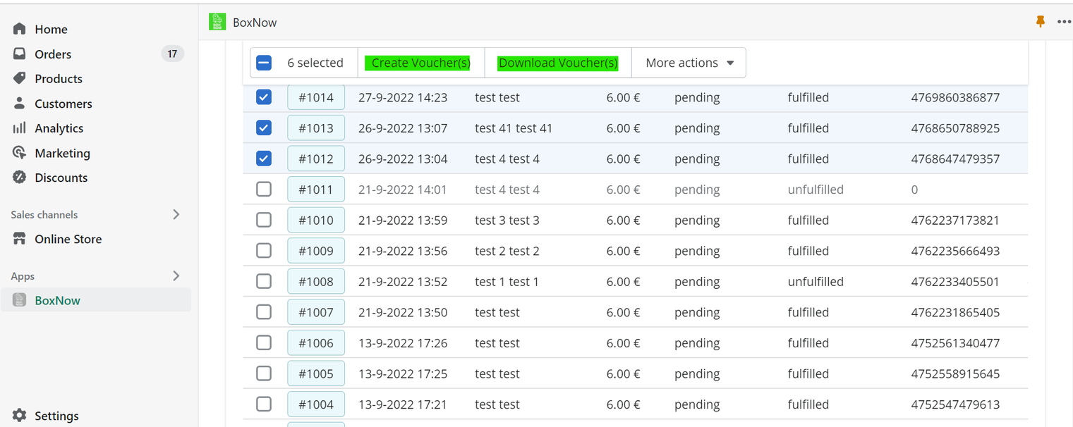 Στην περίπτωση πολλαπλών vouchers επιλέγουμε συνολικά τις παραγγελίες στη συνέχεια Create Voucher (s) και στη συνέχεια Download Voucher(s)