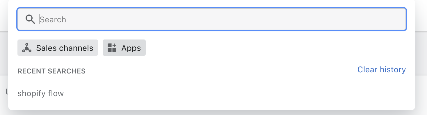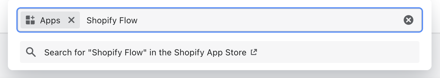 Έπειτα, πατάμε πάνω στο κουμπί που λέει Apps, και αρχίζουμε να πληκτρολογούμε στο πεδίο της αναζήτησης “Shopify Flow”.